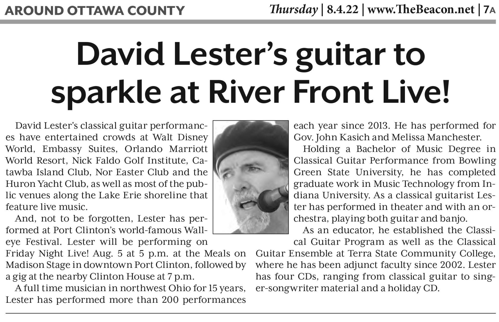 Equipped with a Bachelor of Music in Guitar performance from BGSU, Lester has also served on the music faculty of Terra State Community College for 20 years. In addition, he taught at Tiffin University's Ivy Bridge College.