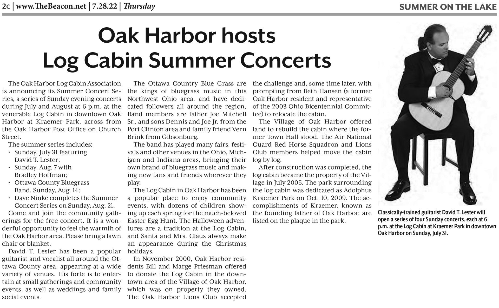Fremont Ohio based guitarist/vocalist David T. Lester has been performing full-time along the Lake Erie Shoreline since 2009. His toe-tapping performances make you want to sing, whistle or hum along.